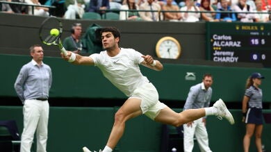 Carlos Alcaraz compareció en su primer partido en Wimbledon 2023 como un trueno y arrolló al francés Jeremy Chardy en una hora y 50 minutos de duelo (6-0, 6-2 y 7-5). El murciano y primer cabeza de serie en el grand slam londinense cerró su estreno sobre la hierba del All England Club con una actuación soberbia, sin rastros de esas molestias físicas en el aductor que hicieron temer lo peor en la final de Queen's y con un juego completamente adaptado a la superficie.