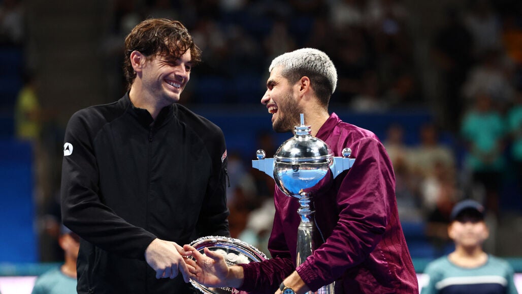 "Sin duda ha sido mi mejor temporada hasta ahora. Ocho títulos, diez finales. Eso demuestra lo duro que he trabajado para poder vivir estos momentos y alcanzar mis metas", señaló Alcaraz tras batir a Taylor Fritz en la final del ATP500 de Tokio.
