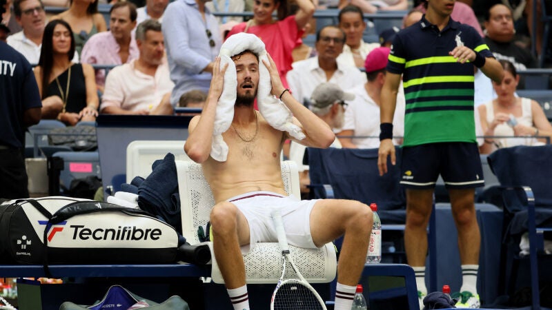 El calor y la humedad están pasando facturas a los jugadores en el US Open. Las condiciones climatológicas están suponiendo un reto en el último grand slam del año y Daniil Medvedev las sufrió en sus carnes en su partido ante Andrey Rublev. Un partido que se prolongó durante dos horas y 47 minutos con una temperatura superior a los 30 grados y un elevado porcentaje de humedad.