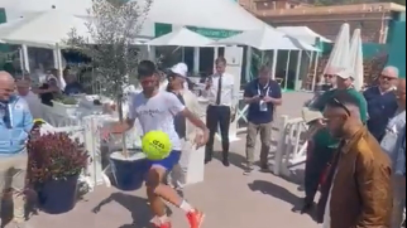 Los tres, tras recibir una pelota de tenis gigante que habitualmente los aficionados utilizan para conseguir las firmas de los tenistas, han protagonizado un ronde y han dado algunos toques al balón. En esas imágenes, que el propio Djokovic ha compartido en redes sociales, se ve al tenista sonriente.