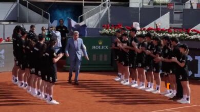 Santana recibió una emotiva felicitación, y de sorpresa, por toda la organización del Mutua Madrid Open. Voluntarios, recogepelotas, pisteros y miembros del torneo se unieron para felicitarle.