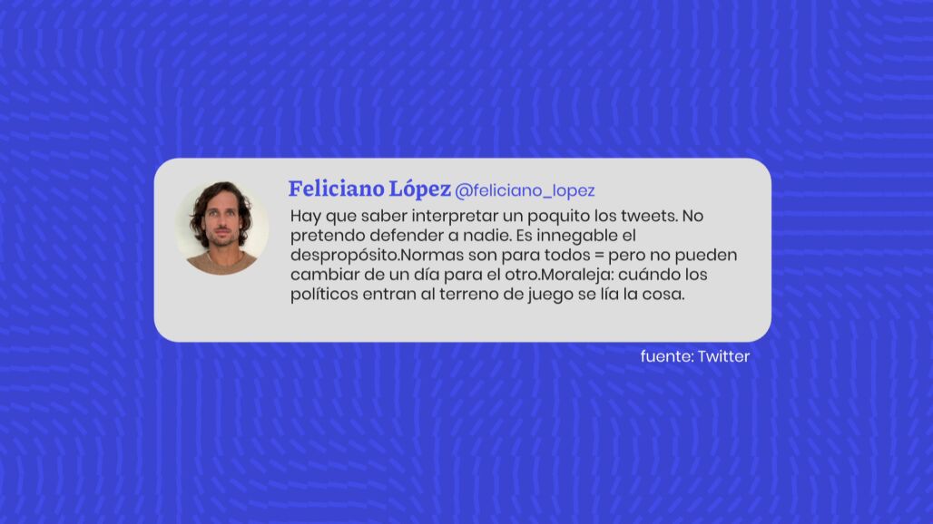 Ante las críticas recibidas por el tuit, el tenista español se vio obligado a puntualizarse: "Hay que saber interpretar un poquito los tweets. No pretendo defender a nadie. Es innegable el despropósito. Normas son para todos iguales, pero no pueden cambiar de un día para el otro. Moraleja: cuando los políticos entran al terreno de juego se lía la cosa".