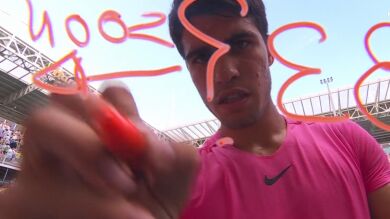 Carlos Alcaraz dejó una imagen muy comentada con si peculiar firma a la cámara tras su victoria ante Tommy Paul. Fernando Alonso contestó al murciano.