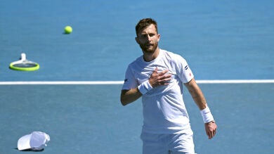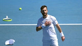 El francés Corentin Moutet, que este viernes se enfrenta al español Carlos Alcaraz en la tercera ronda del torneo individual del Open de Australia, lanzó su raqueta contra una cámara en el transcurso del partido de dobles que disputaba este jueves junto a su compañero Luca Sánchez contra los australianos Alex Bolt y Dane Sweeny.