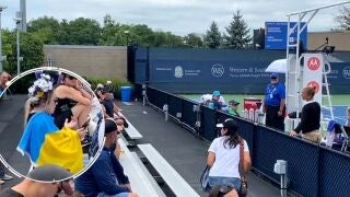 Lola, la aficionada de origen uzbeko y de nacionalidad estadounidense, tuvo que abandonar el Lindner Family Tennis Center después de que el partido tuviera que pararse por la distracción que suponía la gran bandera de Ucrania que acarreaba.