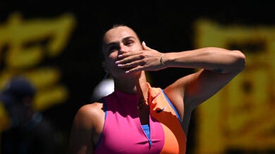 "El año pasado lo obligué a grabar el vídeo y creo que este año lo puedo conseguir de nuevo", explicó la bielorrusa en una breve entrevista en pista tras imponerse con claridad a la estadounidense Iva Jovic por 6-3 y 6-0, en los cuartos de final del Abierto de Australia.