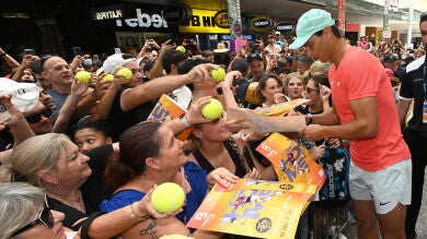 Un año después de todo aquello Nadal está de vuelta y esta madrugada conocerá a su primer rival en el ATP250 de Brisbane. Será su primer partido desde aquel fatítido 18 de enero que detuvo de golpe su carrera. Rafa ha trabajado durante un año para recuperarse y estar listo para el que todo indica será su último 'baile' en el circuito. En Brisbane la expectación con el ganador de 14 Roland Garros es total y quedó comprobada en un acto público en Queen Street Mall donde firmó autógrafos, atendió a lo fans y realizó unas declaraciones.