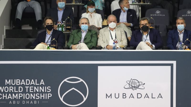 El rey emérito ha reaparecido públicamente desde febrero de 2021 en un partido de Nadal en el torneo de exhibición de Abu Dabi, donde ha perdido ante Murray en dos sets.