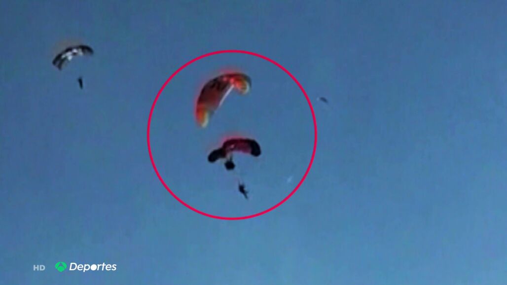 "Se ve un parapente, tiene pinta de que es alguien novato. Y un paracaídas de salto base que se tira y cuando abre el paracaídas lo hace muy cerca del otro parapentista. El parapentista se queda en shock, no lo escucha y va contra él. Una vez que se chocan ya se enredan y van en autorrotación hasta el agua", describe Nico al ver la escena.