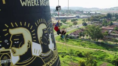 Thomas Van Tonder bate el récord Guinness de escalada con cuerda en las torres de Soweto en Sudáfrica
