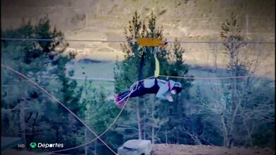 Jesús ha sido uno de los primeros en probar la recién inaugurada segunda tirolina más larga del mundo: "Es una pasada, un auténtico privilegio ser de los primeros en probarla, te sientes un poco 'pájaro', más que miedo siento un disfrute total", explica Jesús Sánchez, aventurero y de los primeros en probarla.