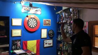 Toni Alcinas, jugador profesional de dardos, se ha visto obligado a 'teletrabajar' en casa por el coronavirus participando online en el Mundial.