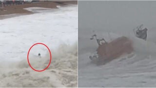 Un surfista se jugó la vida en la costa de Hastings, en el Reino Unido, tras lanzarse con su tabla al agua en mitad de un salvaje oleaje provocado por la tormenta Ciara. El surfista apareció dos horas después a 10 kilómetros de distancia.