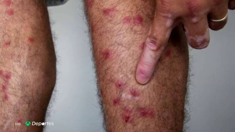 Es el caso de unos jugadores de pádel, que tras acabar el partido se dieron cuenta de que habían sido acribillados por la mosca negra. Alguno de los deportistas terminó con más de 60 picaduras.