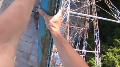 El escalador Marcin Banot lo ha vuelto a hacer. Esta vez ha sorprendido a todos logrando alcanzar la cima de una noria en Lituania a pesar de los continuos obstáculos y sin utilizar protección alguna. "Esto resbala mucho, sin guantes es mucho mejor", cuenta Banot.