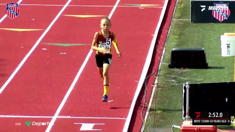 Este niño de 10 años ha sorprendido al mundo del atletismo por sus increíbles registros y por la profesinalidad que exhibe a su corta edad.