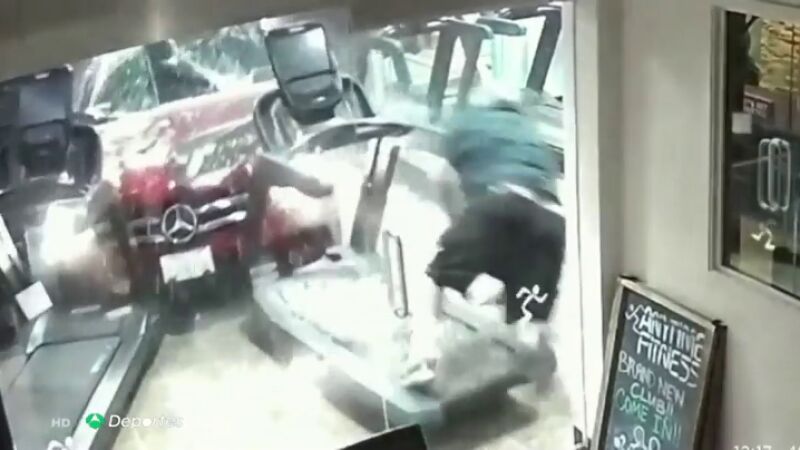 Samuel Kiwasz no podía imaginar que mientras estaba subido a la cinta iba a ser atropellado de forma salvaje dentro del gimnasio. La conductora, que se bajó descalza tras el accidente, aseguró que no le funcionaron los frenos.