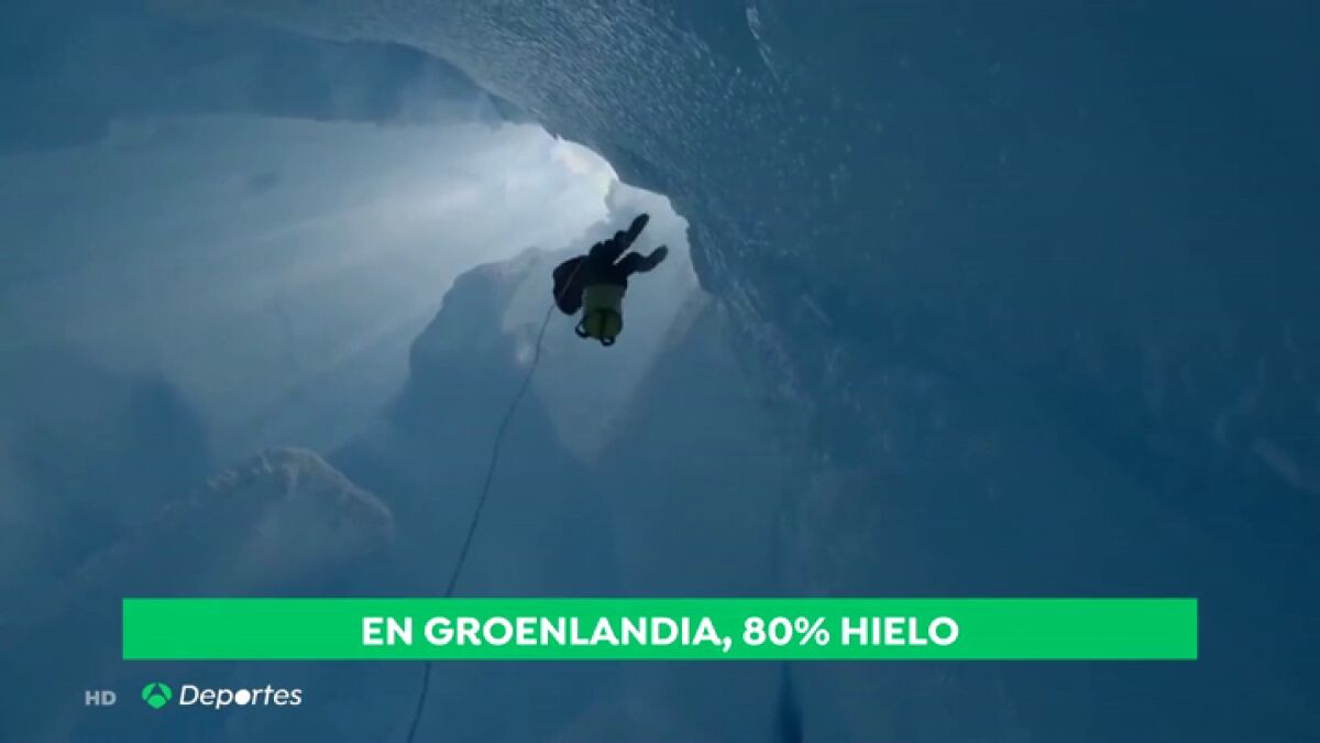 Descender a una sima de hielo es muy peligroso. Quien mejor conoce el medio es el canadiense Will Gadd. Su última aventura ha sido ir a Groenlandia para comprobar el calentamiento de la zona; el 80% de la isla es agua helada.