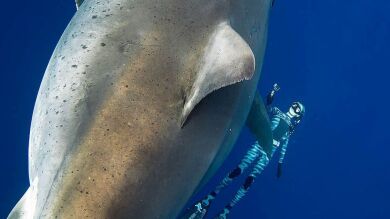 Escalofriante: submarinistas tocan a 'Deep Blue', el tiburón blanco más grande del mundo