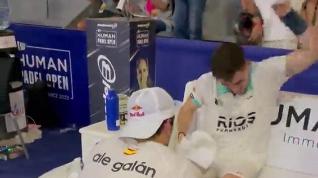La desesperación y el enfado del jugador de pádel de 22 años fue tal que cogió un rollo de papel y lo golpeó contra el banquillo en un gesto de contrariedad. Tras casi 40 segundos, Sanz le toca cariñosamente la gorra a Galán en señal de agradecimiento en lo que ya es una de las imágenes del torneo e incluso del año.