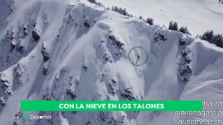 El snowboarder Aitor Aranbalza demostró su pericia y calidad en un descenso por fuera de pistas en el Valle de Arán. Nada más comenzar el descenso se vio sorprendido por un alud, pero logró ir más rápido que la avalancha y logró salir ileso.