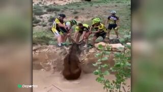 El heroico rescate de un grupo de ciclistas a un ciervo que se estaba ahogando