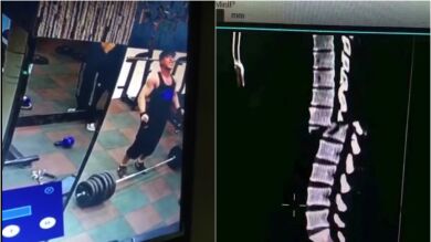 Escalofriante lesión en un gimnasio de China: se parte la espalda al levantar pesas