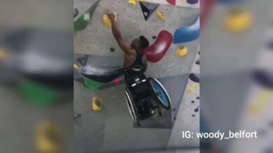 Woody Belfort, el jugador de baloncesto que escala por un rocódromo con su silla de ruedas