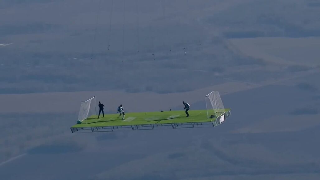 El partido de fútbol más espectacular de la historia ha sido posible gracias a Sergey Boytcov. El ruso ha logrado un récord mundial, ha jugado un partido de fútbol a 2.000 metros de altura. El campo de fútbol, que parece que está flotando en el cielo, estaba sujeto a un globo aerostático.