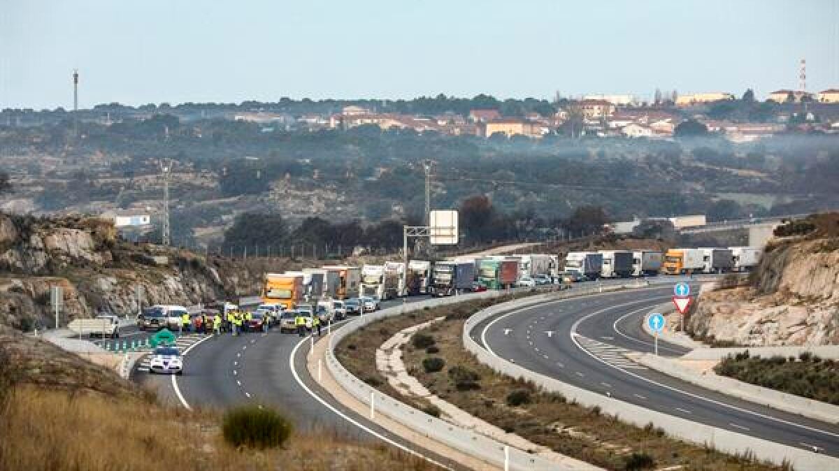 Los agricultores cortaron el tráfico la frontera con Portugal en la autovía E-80 y la Nacional 620, también la A-6 a la altura de Benavente. Protestan contra la política agraria de la UE