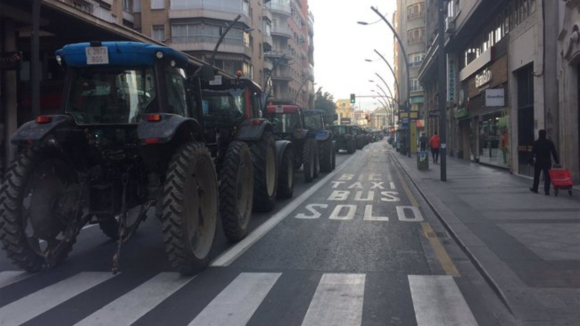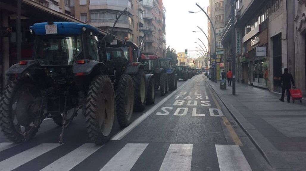 Más de 200 tractores mantienen su bloqueo en el centro de Murcia exigiendo una reunión en el Ministerio de Medio Ambiente para agilizar una evaluación de impacto ambiental a un proyecto de regeneración del Mar Menor que supondría poder regar en el campo de Cartagena.