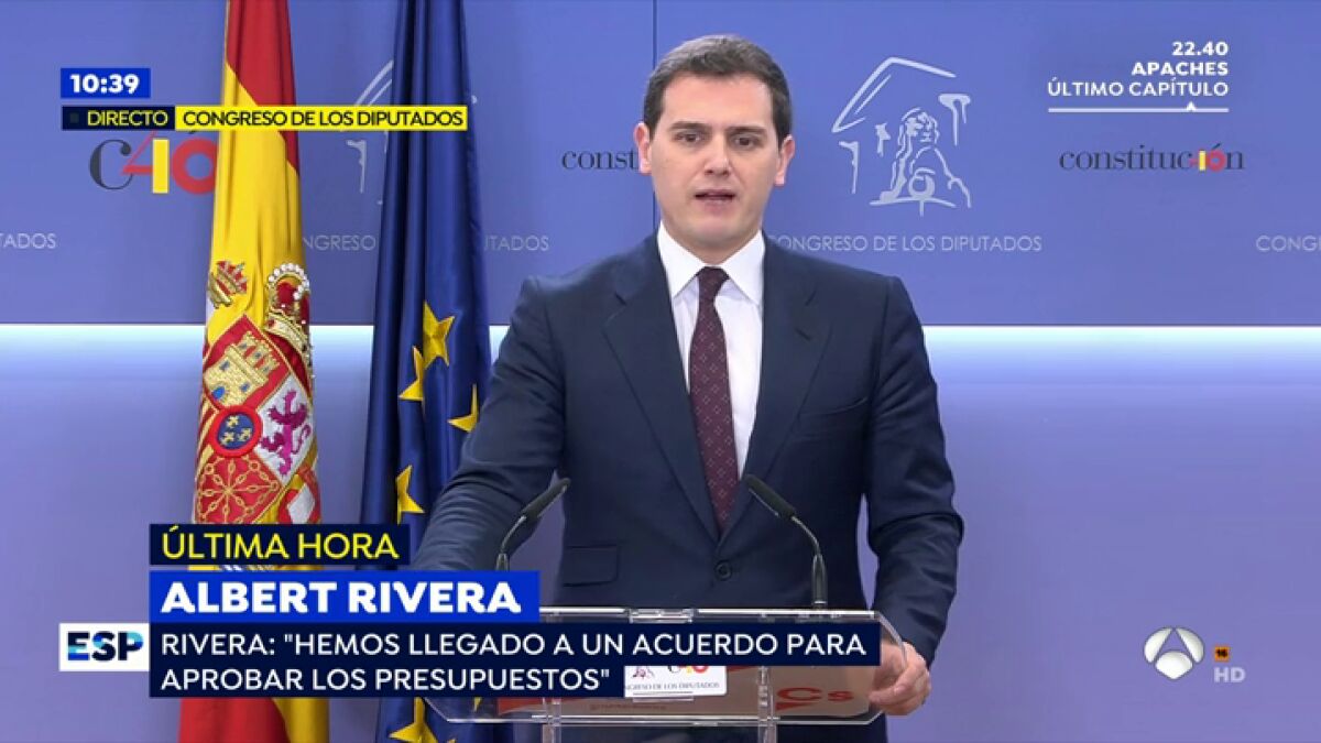 Albert Rivera: "Hemos llegado a un acuerdo para aprobar los Presupuestos"