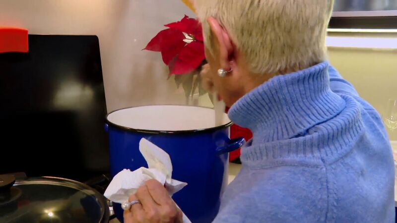 Entramos en la cocina de Luisa. Este año tiene 11 invitados. La pillamos preparando el tradicional caldo navideño y también el fricandó. Calcula que se ha gastado alrededor de 360 euros en comida.