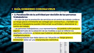 - En caso de que la prestación de servicios en el centro de trabajo conlleve un riesgo grave e inminente de contagio por coronavirus (…) también las personas trabajadoras pueden interrumpir su actividad y abandonar el centro de trabajo.