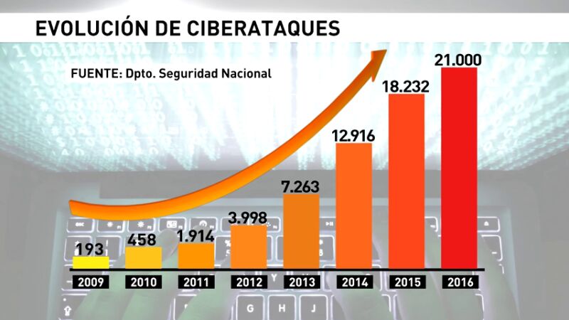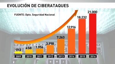 Son datos del Informe de Seguridad Nacional. Por estos ataques informáticos se han detenido a 193 personas. En ocho años el número de incidentes que se han frenado ha pasado de 200 a más de 20.000.