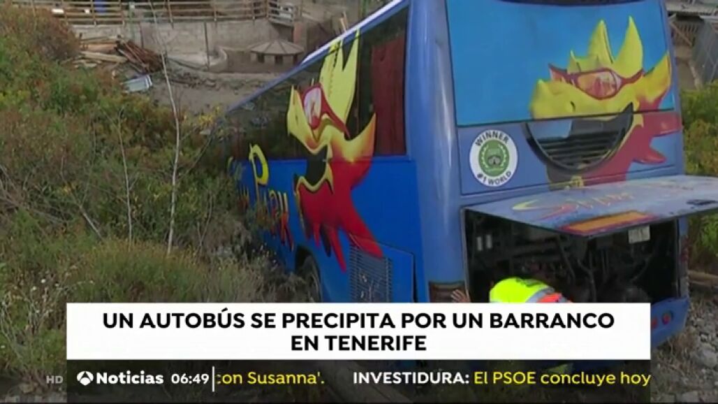 Un autobús de 35 pasajeros se queda sin frenos en Tenerife y consigue salir de la vía causando 3 heridos leves