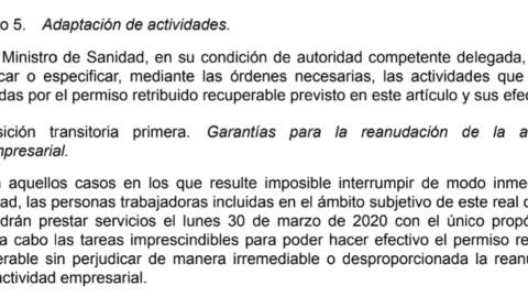 Todo el mundo estaba pendiente de la publicación en el BOE del decreto donde se recogían las actividades esenciales que seguían su actividad económica en España tras el endurecimiento de las condiciones de confinamiento en España por la pandemia del coronavirus y ha sido publicado solo media hora antes de su entrada en vigor. Recoge una moratoria de un día "para aquellos casos en los que resulte imposible interrumpir de modo inmediato la actividad".