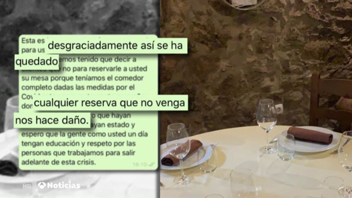 "Esta es la mesa que teníamos reservada para usted. Desgraciadamente así se ha quedado. Hemos tenido que decir a clientes que no para reservarle a usted su mesa porque teníamos el comedor completo dadas las medidas por el Covid. Este es un restaurante pequeño donde cualquier reserva que no venga nos hace daños. Espero que hayan comido bien donde hayan estado y espero que la gente como usted un día tenga educación y respeto por las personas que trabajamos para salir adelante de esta crisis".