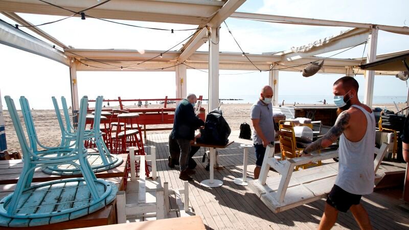 Barcelona es la única ciudad de España en la que no se puede entrar ni salir. Pese a ello, la capital catalana ha podido reabrir hoy los chiringuitos de sus playas al haber accedido a la fase 1 de la desescalada.