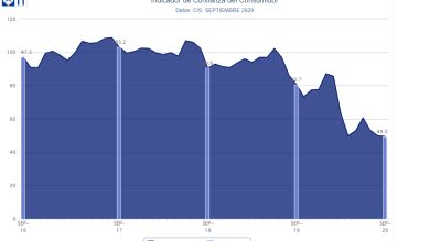 En concreto, cayó 0,5 puntos la valoración de la situación actual, mientras que la de las expectativas lo hizo en 0,4. En conjunto, desde febrero de este año el ICC ha disminuido un 42,3 %, con un descenso del 61,5 % del índice de situación actual y una pérdida del 26,9 % en el índice de expectativas.