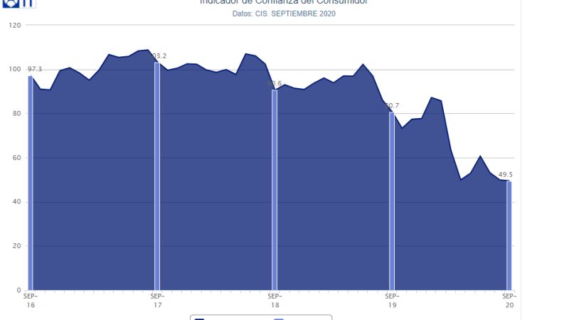 El Indicador de Confianza del Consumidor (ICC) publicado este lunes por el Centro de Investigaciones Sociológicas (CIS) evidencia que la confianza de los consumidores empeoró en septiembre y rebasó los mínimos marcados en abril hasta situarse en niveles similares a los de los peores momentos de 2012 y 2008.