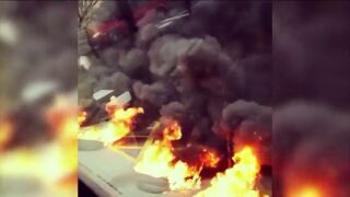 Poco antes, a las 8.30 horas, otro grupo de encapuchados ha quemado algunos neumáticos a la altura del número 228 de Gran Vía, lo que ha provocado una gran columna de humo y la interrupción del tráfico en un sentido de la marcha.