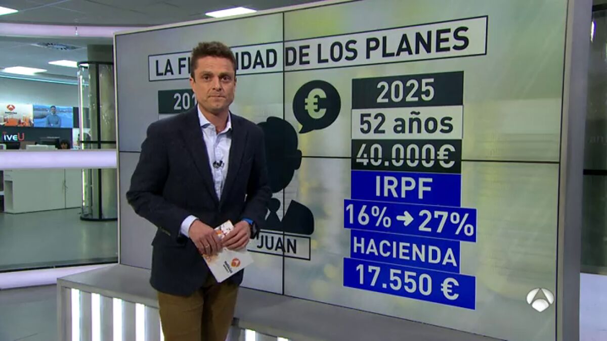 Este es un ejemplo concreto. Se trata de Juan, tiene 45 años y gana 25.000 euros anuales. Juan es un ahorrador nato y ha decidido aprovechar esta ventaja que ofrece el Gobierno para recuperar su fondo de pensiones. Lo hará en 2025, cuando tenga 52 años y 40.000 euros en su plan. ¿Qué supondrá esto?