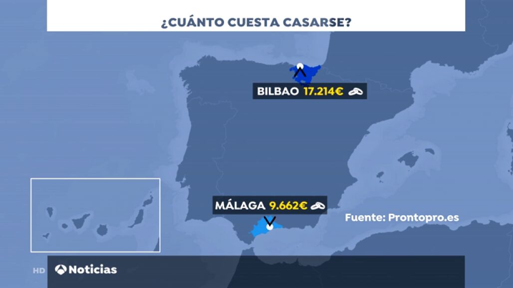 Además, según la investigación el lugar en el que se celebre el enlace también influye en el precio. De hecho, entre el más barato, Málaga con 9.962 euros de media, y el más caro, Bilbao con 17.214 euros, hay 7.500 euros de diferencia.