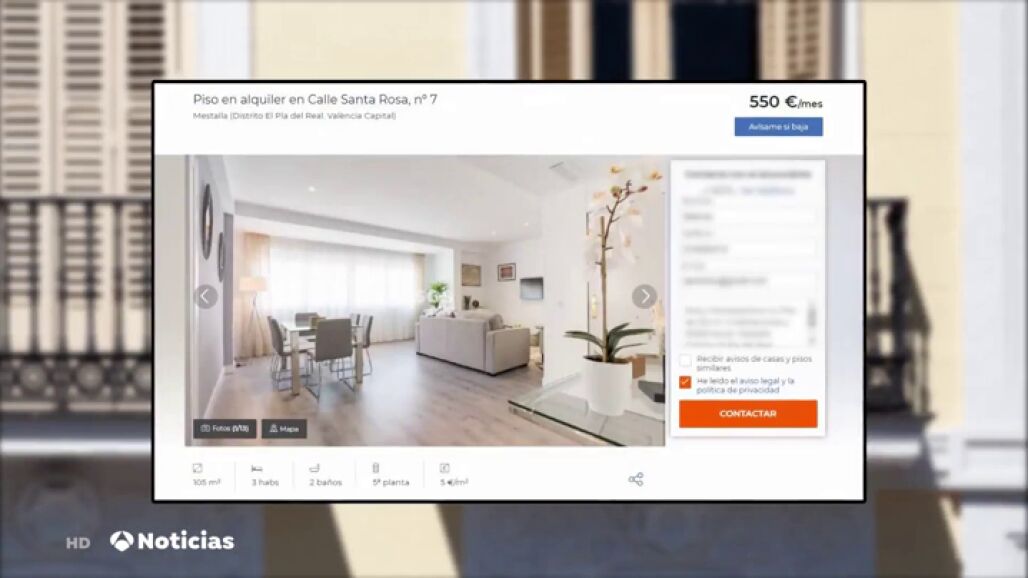 Si miramos en Internet encontramos anuncios de alquiler como éste: "piso en Valencia. 105 metros cuadrados. 3 habitaciones". El aspecto de la vivienda es de revista, y el precio: una ganga: 550 euros al mes. Claramente es una estafa " en zonas turísticas se detectan entre 40 y 50 anuncios fraudulentos cada día"