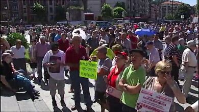 Como cada lunes, desde el pasado mes de enero, los pensionistas han vuelto a concentrarse frente al Ayuntamiento de Bilbao. Piden que se revalorice la prestación de acuerdo al IPC. Mientras, el gasto del Estado en pensiones contributivas sigue creciendo y alcanza una cifra récord.