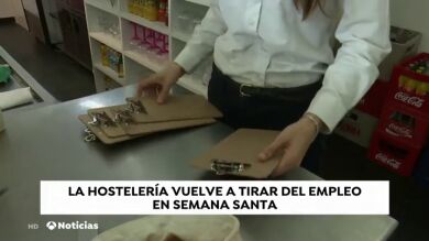 La mitad de puestos de empleos que se crearon en abril salieron de la hostelería: "El mes pasado contratamos a 8 personas, tanto en sala como en cocina", comenta un empresario valenciano. Es el conocido 'efecto Semana Santa': "Estamos todo el tiempo atendiendo a personas", explica una trabajadora de una empresa de hostelería.
