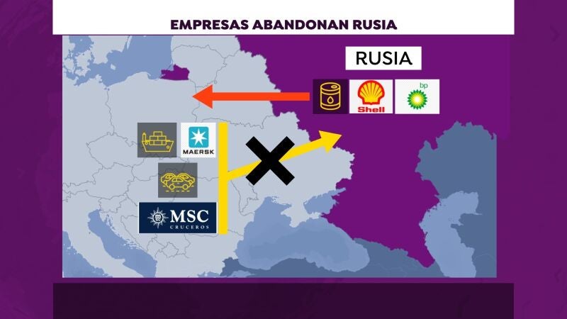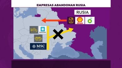 En este contexto, algunas de las petroleras más importantes del mundo que operan en Rusia han anunciado que abandonan el país. Se trata, por ejemplo, de la británica Shell o BP. Mientras, la naviera danesa Maersk ha suspendido temporalmente su envío de contenedores a Rusia.