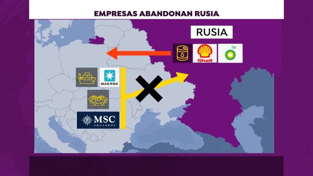 Petroleras como Shell o BP han anunciado que se marchan de Rusia mientras que la naviera Maersk ha suspendido temporalmente su actividad en el país, igual que varios fabricantes de coches