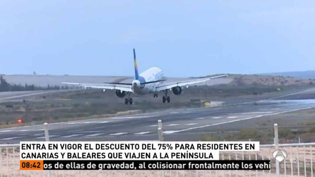 La aplicación del descuento del 75% al transporte aéreo y marítimo de residentes en territorios no peninsulares -Canarias, Baleares, Ceuta y Melilla- entra en vigor a las 9 de esta mañana, hora peninsular.